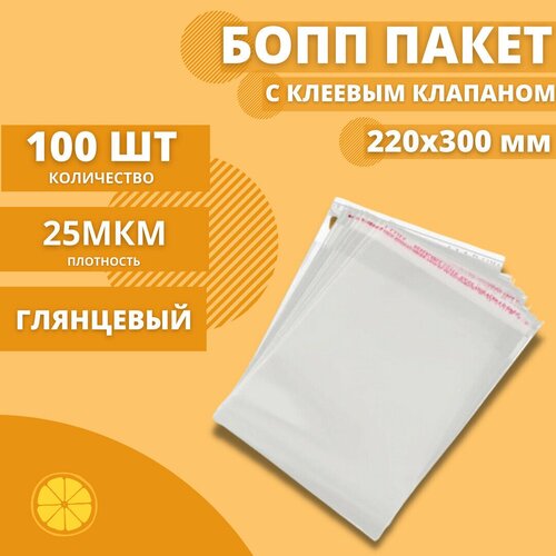 Пакеты фасовочные с клеевым клапаном 220*300+30мм. 25 мкм. (100 шт.)