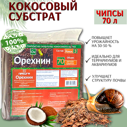 Орехнин Кокосовый субстрат Орехнин-3 брикет 70 литров Чипсы