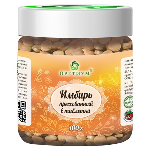 Имбирь прессованный в таблетки, Оргтиум, 100 г