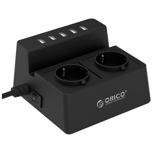 Сетевой фильтр ORICO ODC-2A5U-BK, 2 розетки, с/з, 10А / 2500 Вт 1.5 м 130 мм 130 мм 73 мм 2