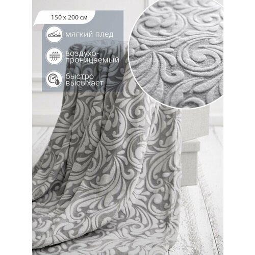 Плед плюшевый 180х200 см на кровать, покрывало, "Империал"
