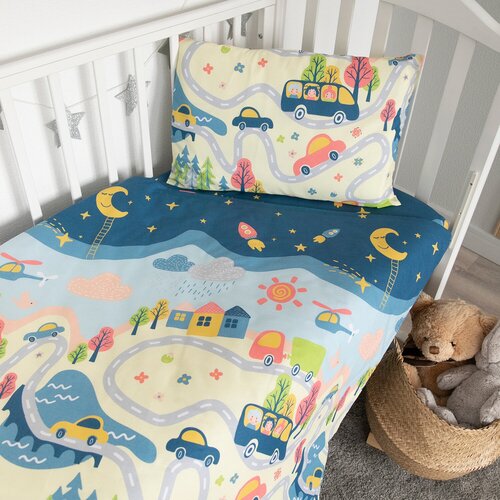 Постельное белье 1 спальное детское 60х120 с простыней на резинке поплин Город