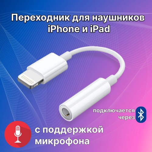 Переходник для наушников iPhone и iPad / адаптер Lighting - 3.5 mm jack (AUX) с поддержкой микрофона