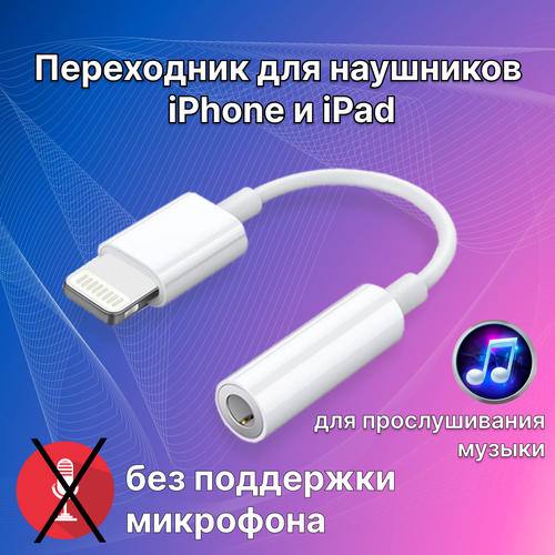 Переходник для наушников iPhone и iPad / адаптер Lighting - 3.5 mm jack (AUX) без поддержки микрофона