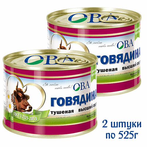 Говядина тушеная "ОВА", 2 штуки по 525г.