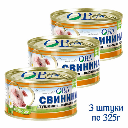 Свинина тушеная "ОВА", 3 штуки по 325г.