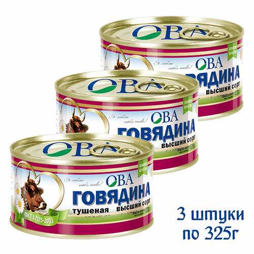 Говядина тушеная "ОВА", 3 штуки по 325г.