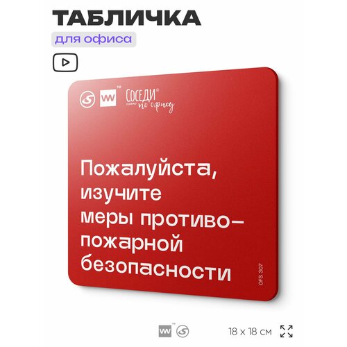 Табличка с правилами офиса "Изучите меры противопожарной безопасности" 18х18 см, пластиковая, SilverPlane x Айдентика Технолоджи