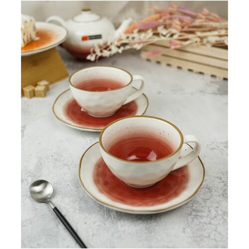 Чашка (чайная пара) 240 мл красная фарфор "The Sun Eco" P.L. Proff Cuisine, 2шт