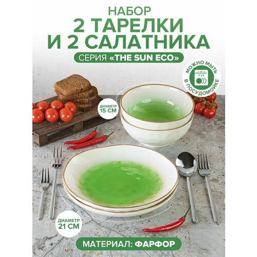 Набор салатников 450 и 510 мл зеленый фарфор "The Sun Eco" P.L. Proff