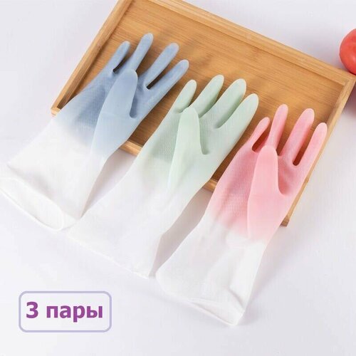 Перчатки хозяйственные виниловые Gloves Color (размер L), 3 пары