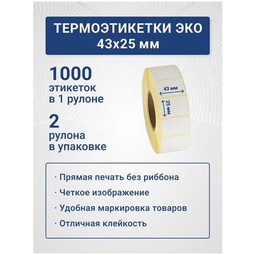 Термоэтикетки ЭКО 43х25 мм, 1000 шт./рул, самоклеящиеся, из бумаги для принтера - 2 ролика