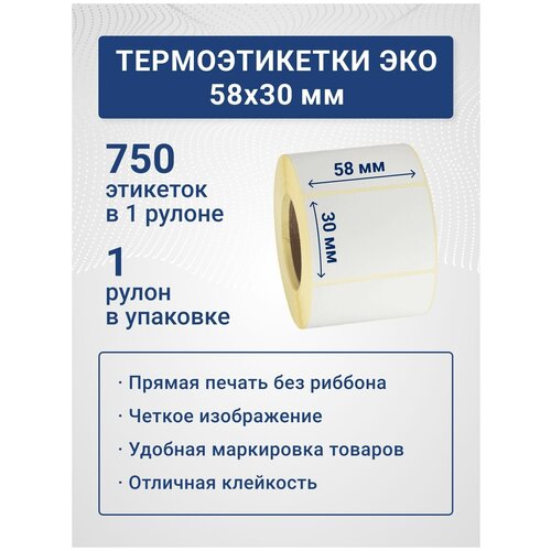 Термоэтикетки ЭКО 58х30 мм, 750 шт./рул, самоклеящиеся, из бумаги для принтера - 1 ролик