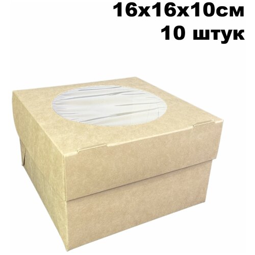 Крафт коробка для 4 маффинов, капкейков с окном, 16х16х10 см, 10 шт/уп