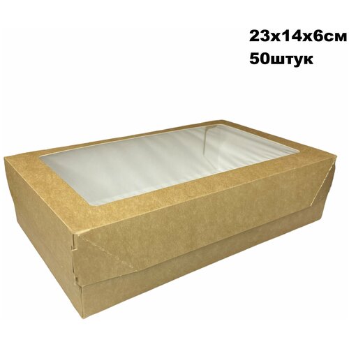 Крафт коробка с окном -23х14х6 см, 50штук