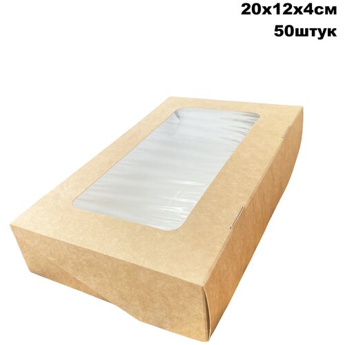 Крафт коробка с окном -20х12х4 см, 50штук