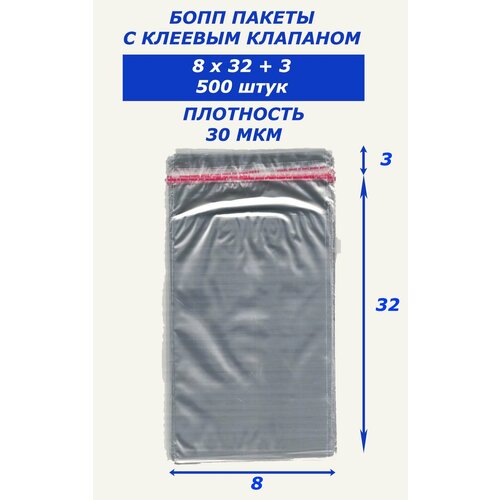 Бопп пакеты с клеевым клапаном 8х20 500 штук