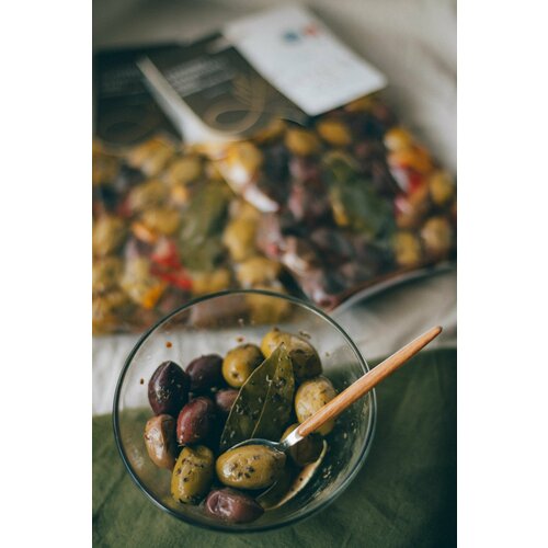 Крупные оливки Халкидики и Каламата с орегано