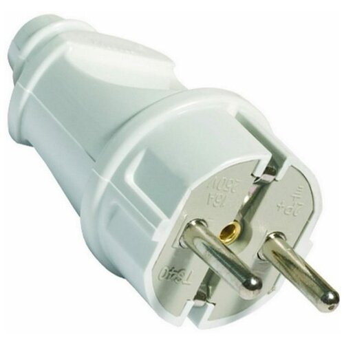 Вилка Пан Электрик с/з 16А 250В прямой вывод проводника ABS-пластик, белая 24203 1