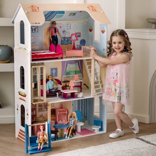 Деревянный кукольный домик Стейси Авенью (с мебелью 15 предметов)