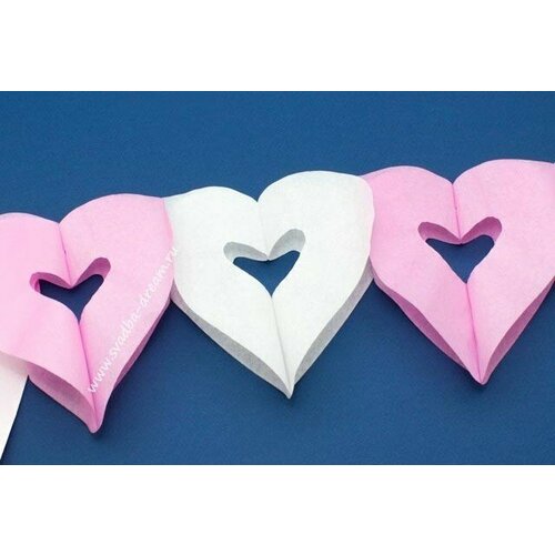 Гирлянда Сердечки бело-розовая 18х17см 4м
