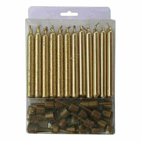 Набор свечей для торта Пати Бум Золотые с блестками 24 штуки в упаковке, 1083649