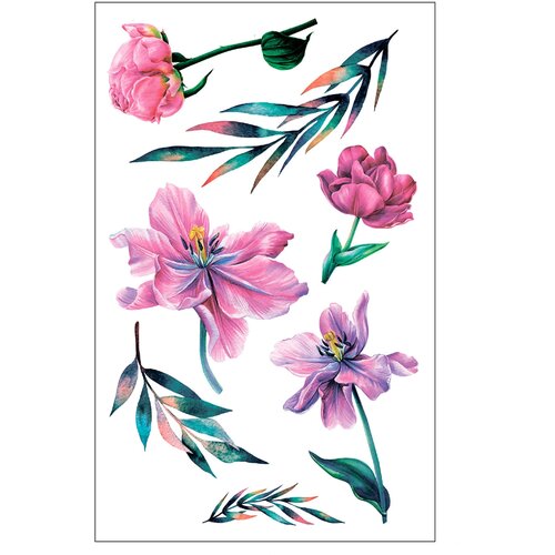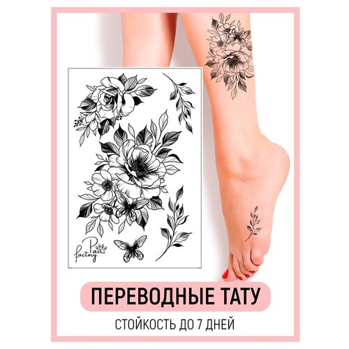 Временные татуировки для тела, для девушек Цветы, надписи