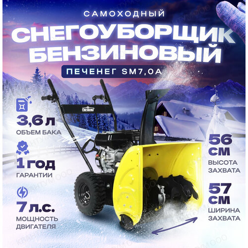 Снегоуборщик бензиновый самоходный 7 л. с. Печенег SM7, ОА , садовая, дачная снегоуборочная машина, техника для уборки снега