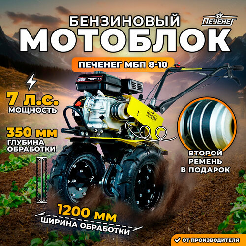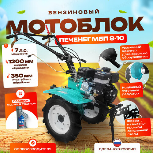 Мотоблок Печенег МБП 8-10 (7л. с, бенз, чугун. ред, 2-х скор, 18 ножей) колеса 4,00-10 + масло в подарок 4Т 10W40 1л