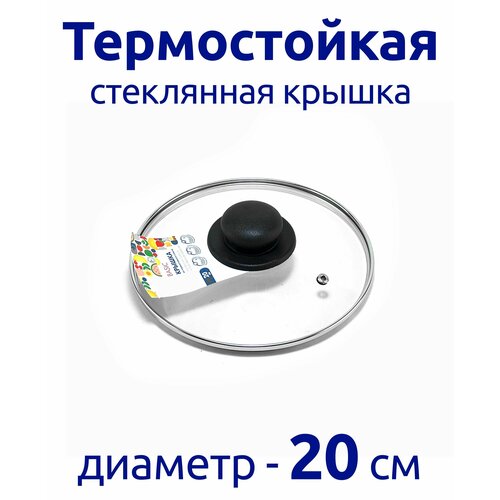 Крышка 20 см из термостойкого стекла, с бакелитовой ручкой, металлическим ободком