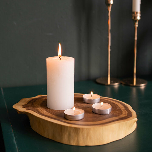 Подсвечник Деревянный Ручной Работы. Спил натуральной древесины вяза (карагача). Модель Nature, 25 см.