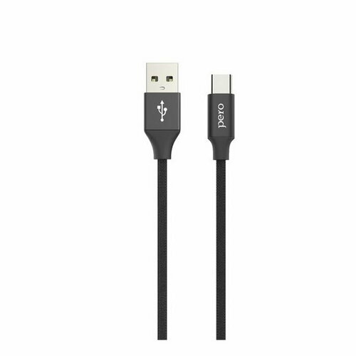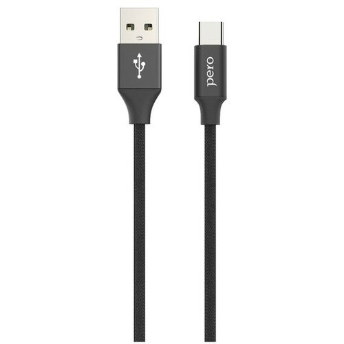 Кабель PERO DC-02, Type-C - USB, 2 А, 1 м, тканевая оплетка, черный