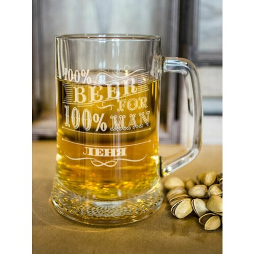 Пивная кружка "100% man" леня бокал именной подарок мужчине любимому папе дедушке брату