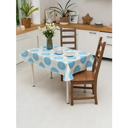 Скатерть клеенка "Круги голубые" с бейкой 135х110 (+/-5)см.