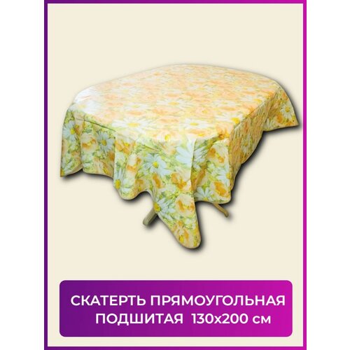 Клеенка большая на стол для кухни и столовой Перспектива 401 130 х 200 см, клеенка Ромашки с прошитым краем.