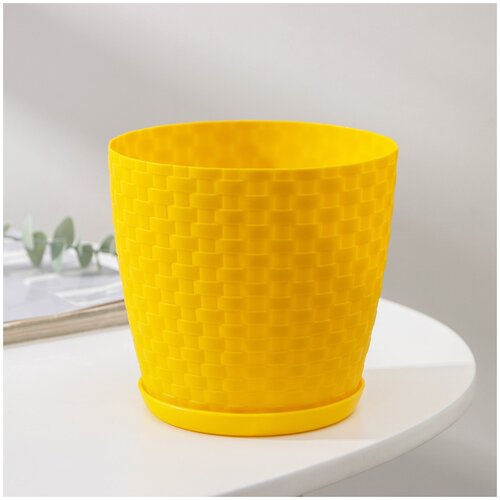 Кашпо Петропласт с поддоном Ротанг, 1.2л, 13x12 см, Желтый