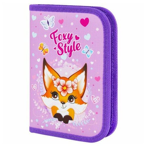 Пенал пифагор, 1 отделения, 2 откидные планки, полиэстер, 20х14 см, "Cute fox", 271018