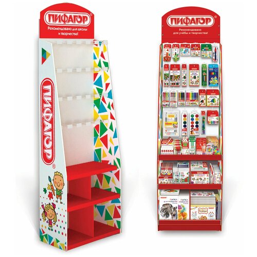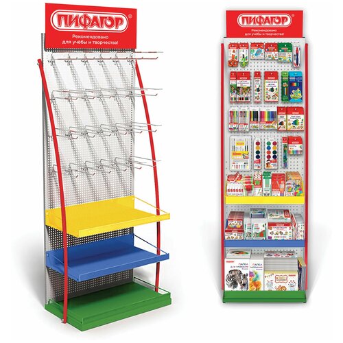 Стойка для размещения товара напольная пифагор, 200х60х40 см, 3 полки, 25 крючков, картон, 503692