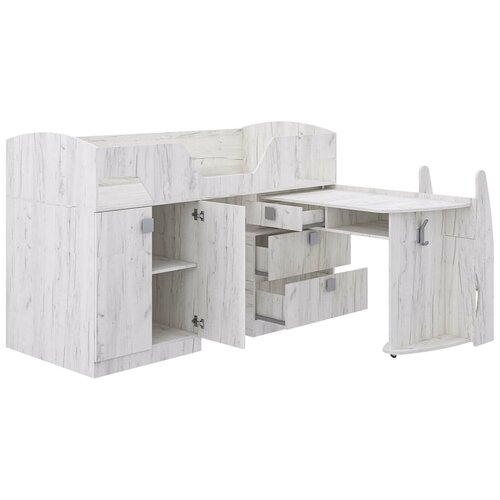 Кровать чердак детская "Лимбо" с ящиками, шкафом, выдвижным столиком, лестницей