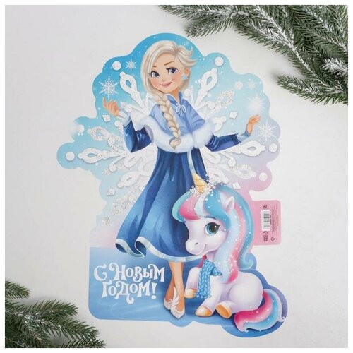Плакат фигурный "С Новым Годом!" Снегурочка, Дед Мороз, 43 х 36 см (1шт.)