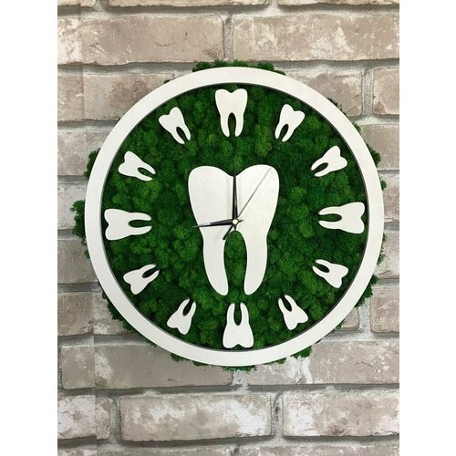 Часы из стабилизированного мха 50 см (зеленые) настенные /дизайн интерьера декор для дома офиса квартиры /руководителю коллеге