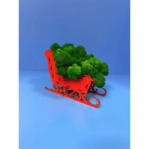Сувенир со стабилизированным мхом, подарок на Новый Год сани Деда Мороза/Санта Клауса/украшение настольное