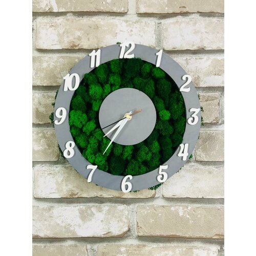 Часы из стабилизированного мха 30 см серо-белые настенные /дизайн интерьера декор для дома офиса квартиры /руководителю коллеге