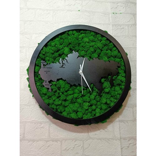 Часы 40 см из стабилизированного мха "Россия" настенные/для дома/офиса/руководителю/госслужащему/экостиль/живой мох