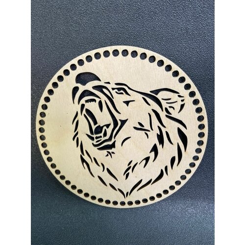 Деревянное донышко/заготовка для вязания "Медведь" набор 2 шт. Дно и крышка для декорирования d15 см. Деревянная основа/уплотнитель для сумок, корзин, шкатулок