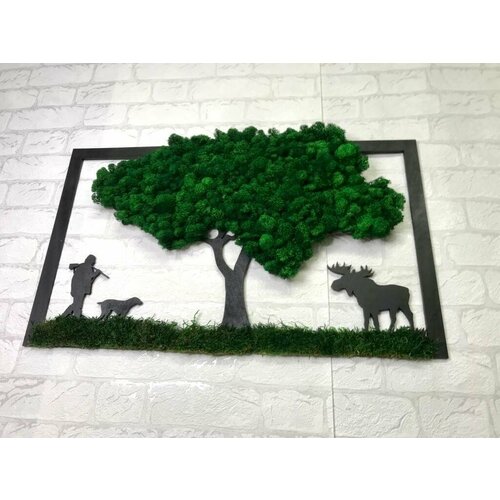 Панно настенное "Охота" 68*40 см со стабилизированным мхомдля декора, дизайна, озеленения, ремонта, отделки