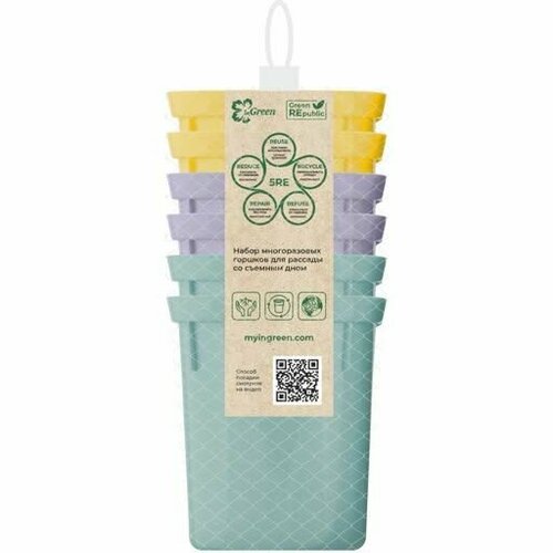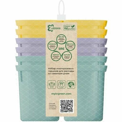 Набор для рассады горшочки 400мл (6шт) InGreen со съемным дном в сетке с подвесом