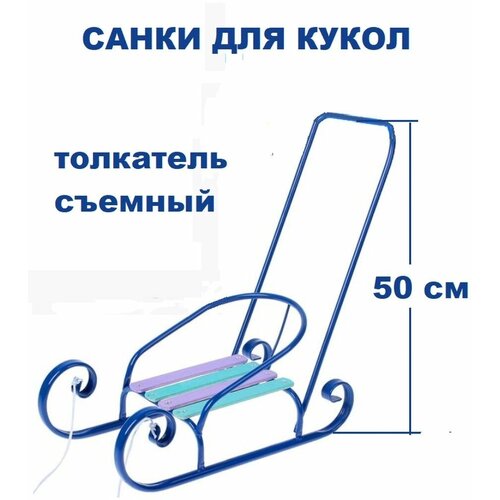 Санки для куклы с толкателем синие