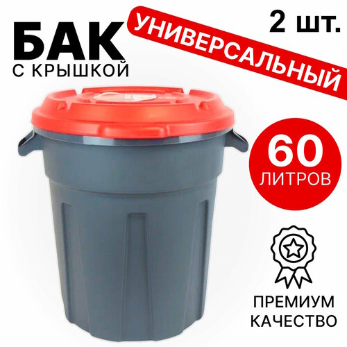 2 мусорных бака контейнера с крышкой 60 литров (Серый)
