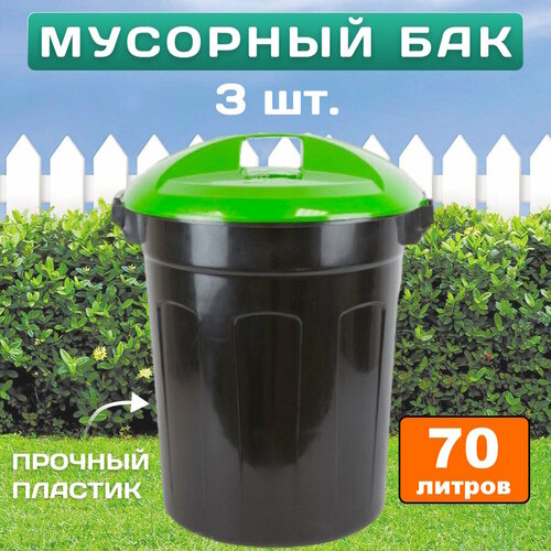 3 мусорных контейнера на 70 литров с крышкой, 3 шт.